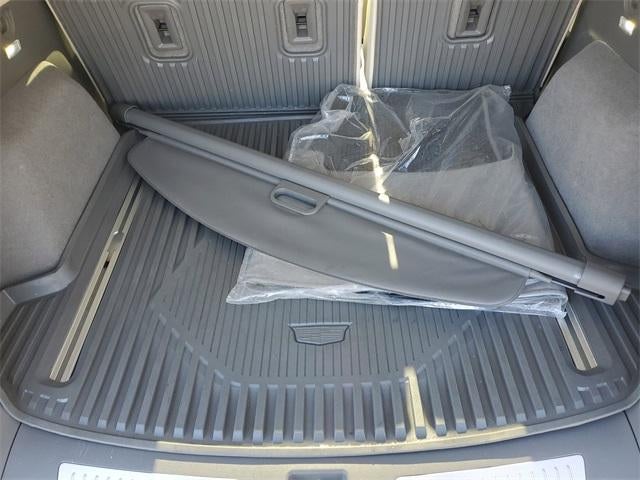 - Opens or closes when the system senses the key fob and the driver extends their foot under the left-hand side of the rear bumper over an image of the Cadillac Crest projected under the vehicle